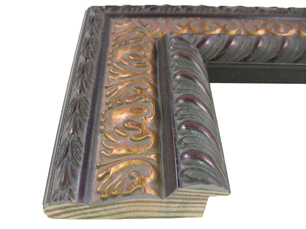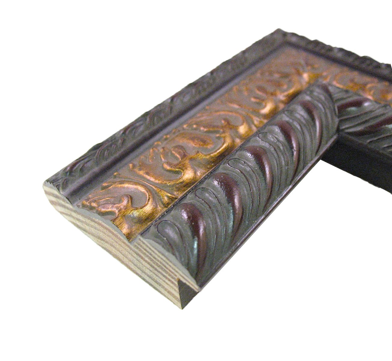 W-140: 3″ Wide Ornate Walnut, Sloped Wood Frame with Espresso Edges (3/4″ Rabbet)